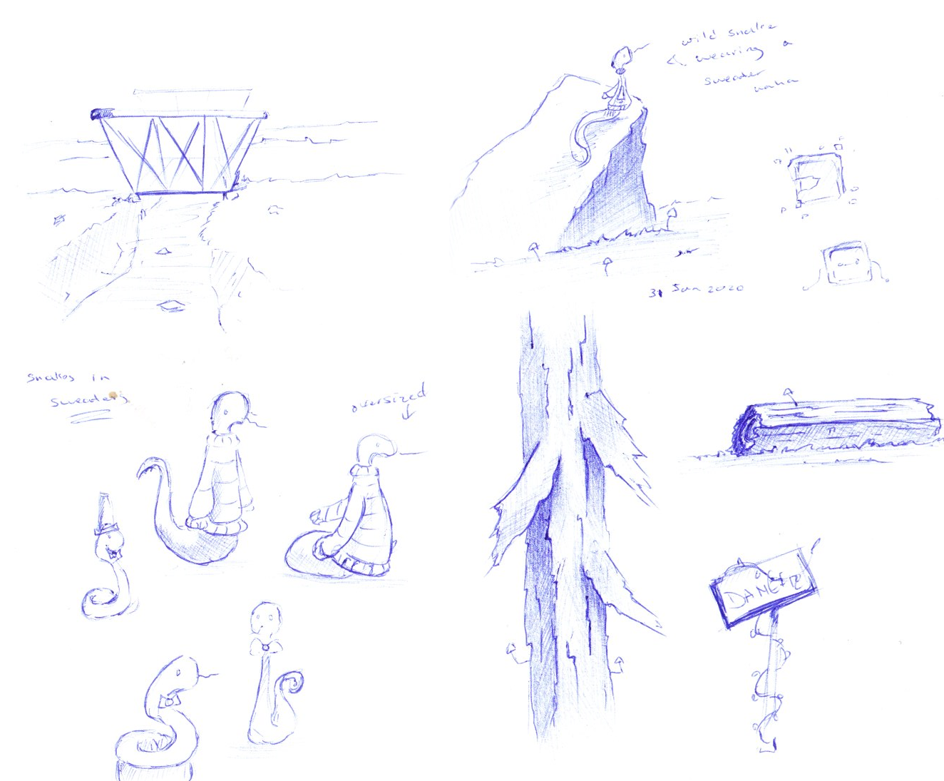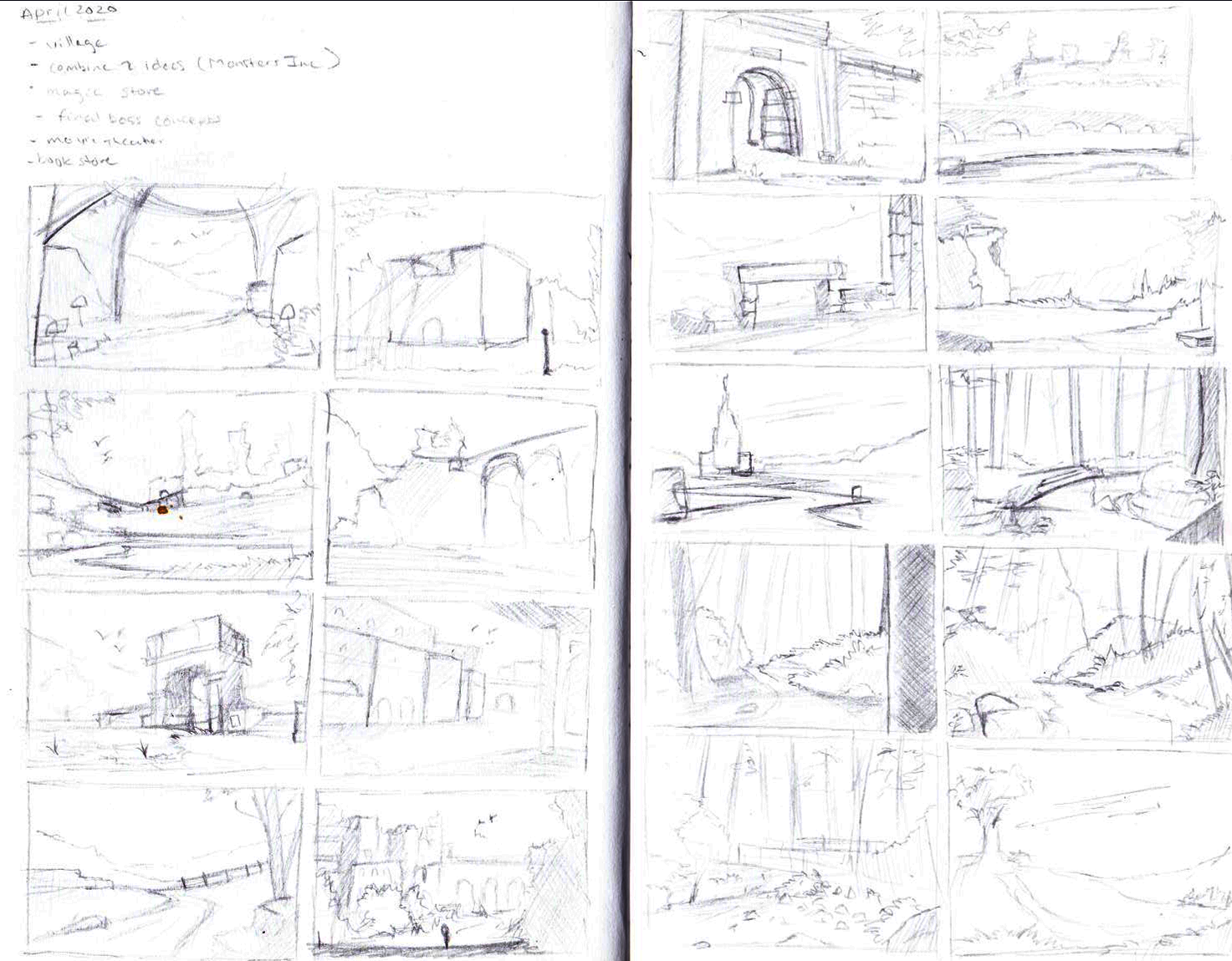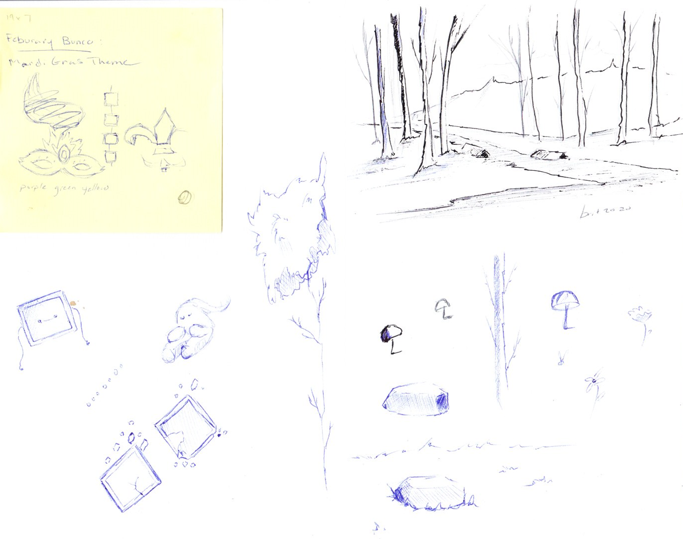 Sketches and works in process from January 2020-December 2020.